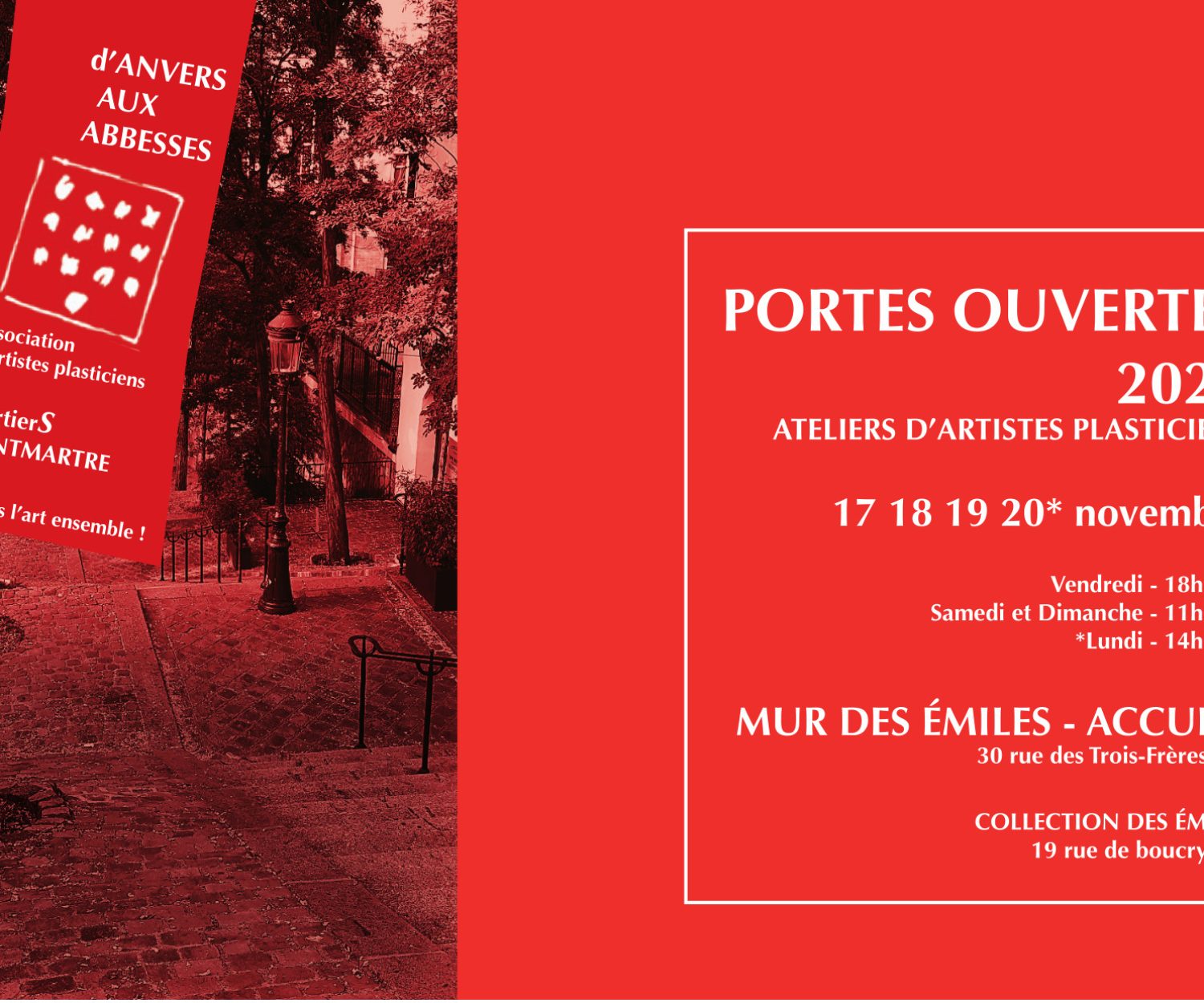Actualités 12 Nov 2023 Portes Ouvertes d’Anvers aux Abbesses du 17 au 20 novembre 2023 Portes Ouvertes d’Anvers aux Abbesses du 17 au 20 novembre 2023 Atelier n°25 - 17 rue André-del-Sarte - 75018 Paris… valadmin